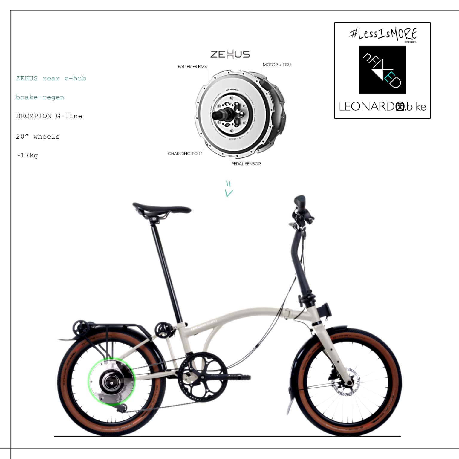 - BROMPTON G-line electric conversion with the innovative ZEHUS HALOS all-in-one motor