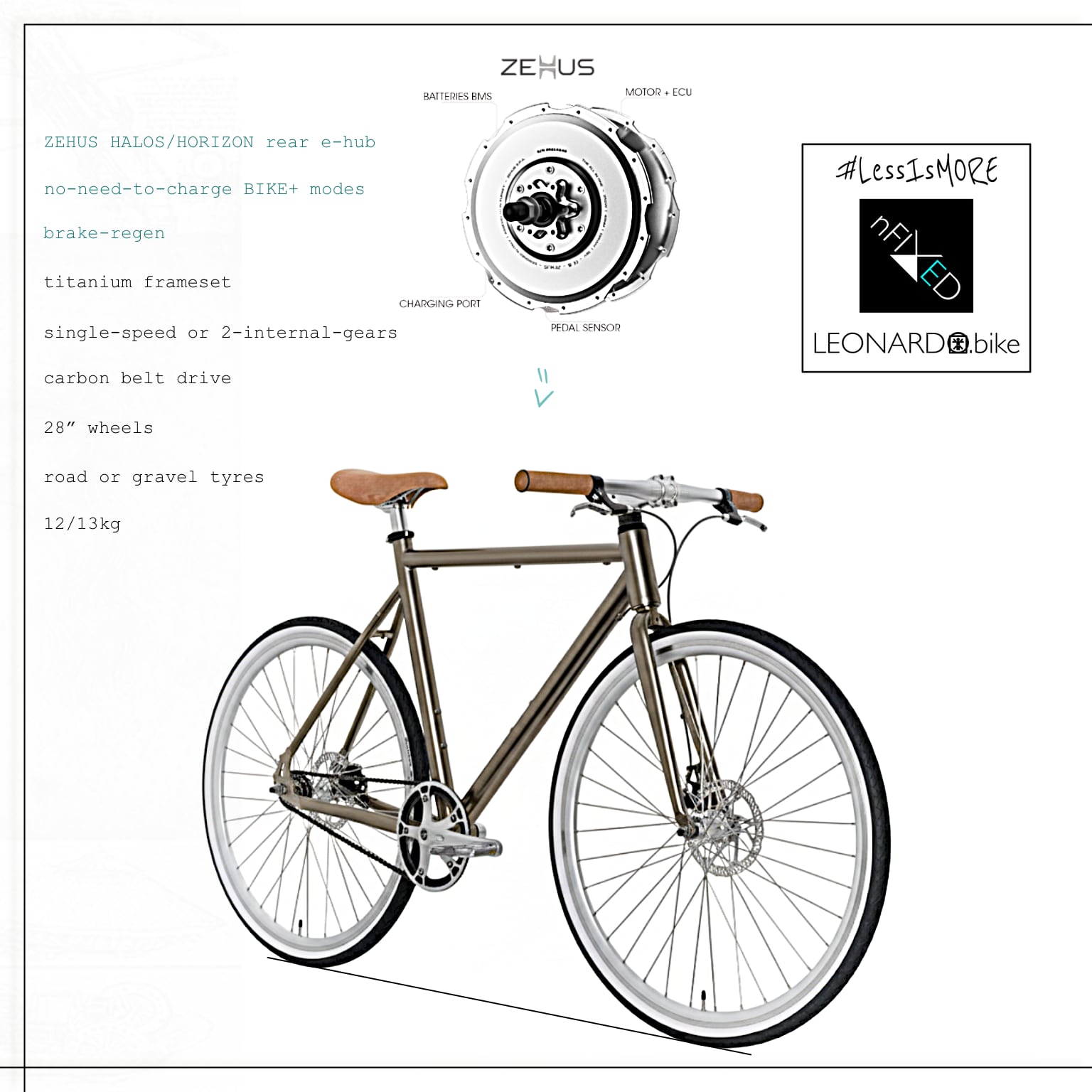 "GEN3.0 ZEHUS-HORIZON LEONARDO" BELT-DRIVE TITANIUM ELECTRIC-BIKE